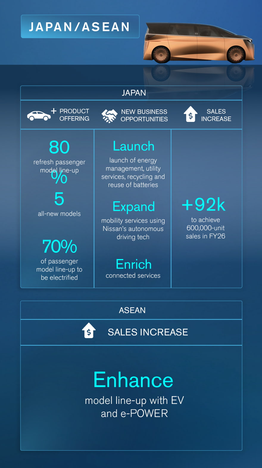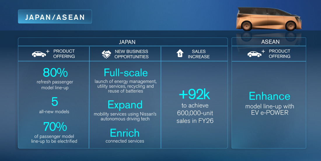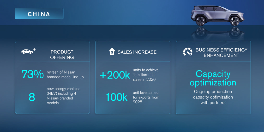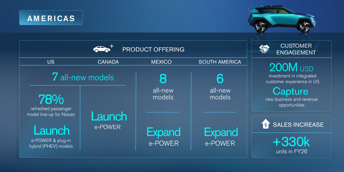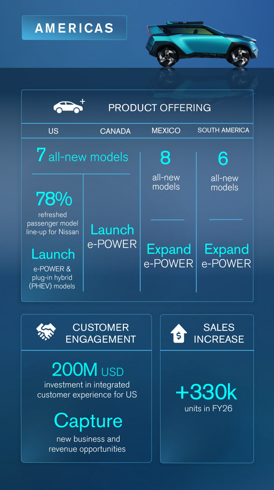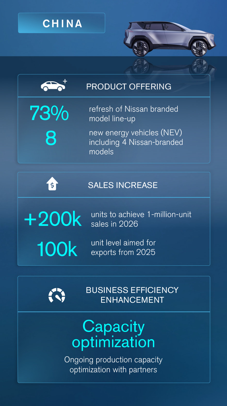 Nissan aims to maximize volume growth in our major markets through a tailored regional strategy. In key regions and markets, Nissan’s actions by fiscal year 2026 (unless otherwise indicated) include: