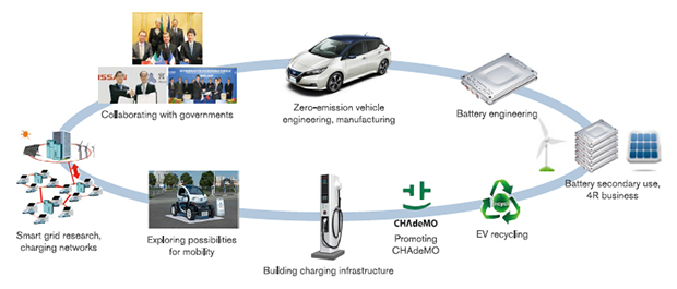 Nissan positions the introduction and popularization of electric vehicles as one of its corporate strategies, not only manufacturing and selling vehicles, but also collaborating with a variety of partners based on a comprehensive approach to promote activities for the spread of electric vehicles. Since launching the Nissan LEAF in 2010 with the commitment to "become a leader in zero-emission vehicles," Nissan has promoted electric vehicles and built electric vehicle infrastructure while also concluding many partnerships with various national governments, local governments, electric power companies, and other industries.