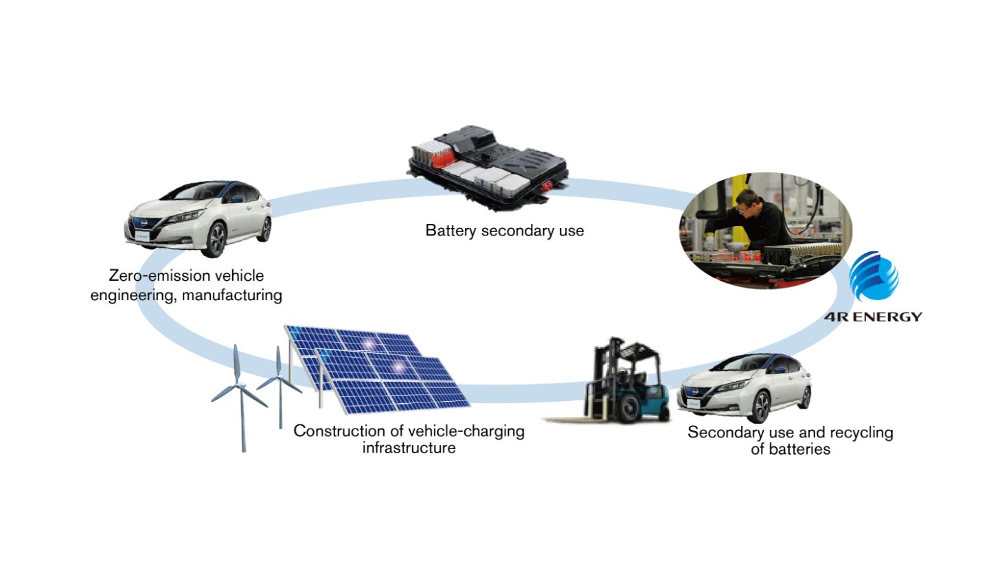 Naming a second-life business for recyclable advanced lithium-ion batteries as the "4R Energy" business in October 2009, both companies started a joint study to "Reuse, Resell, Refabricate and Recycle" the lithium-ion batteries used in electric cars. In March 2018, 4R Energy Corporation inaugurated the Japan’s first plant specializing in the reuse and recycling of lithium-ion batteries from electric vehicles, in the town of Namie in Fukushima Prefecture.