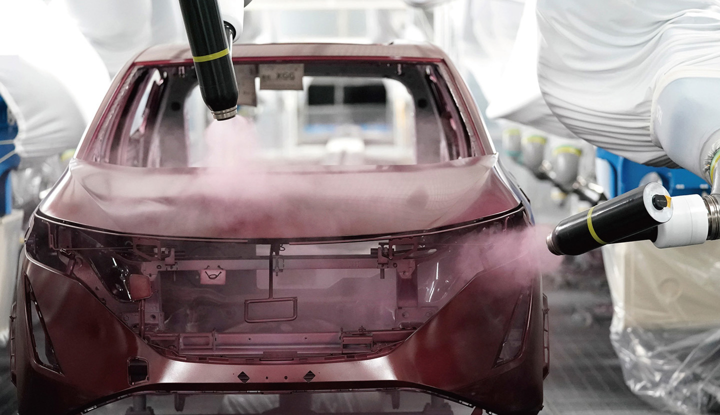 For example, Nissan has developed a water-based paint that maintains the right viscosity at low temperatures, so that bodies and bumpers can be painted together. This will cut carbon dioxide emissions from the process by 25%. Nissan will also use a water-free painting booth that makes it possible to collect all waste paint and reuse it in other production processes.