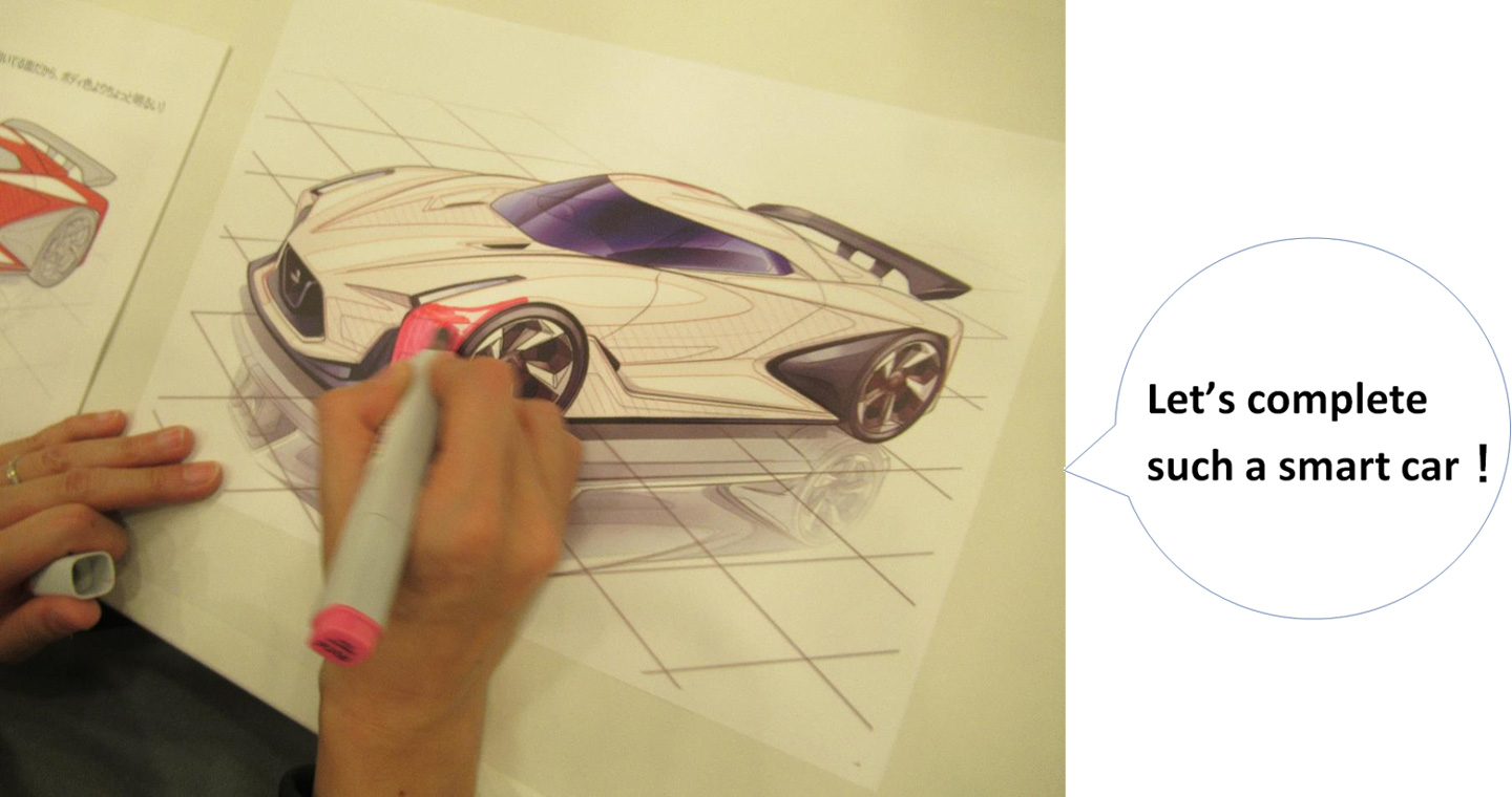 After learning how to manufacture a car, Nissan car designers taught our guests how to paint a car♪