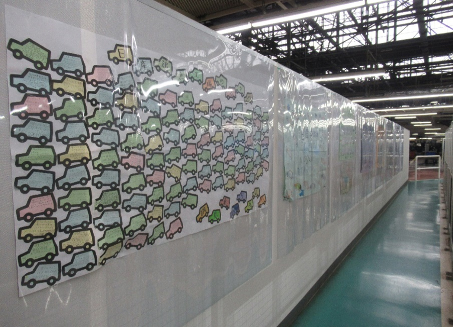 and on the wall of the visitor's passage in the plant.