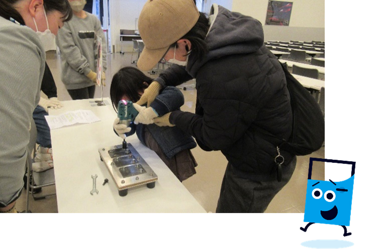 This time, our guests tried pin-board used for trainee, bolt tightening, and masking in paint process.