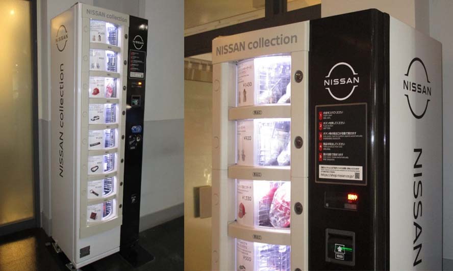The vending machine for Nissan goods in the Guest Hall features the new logo.