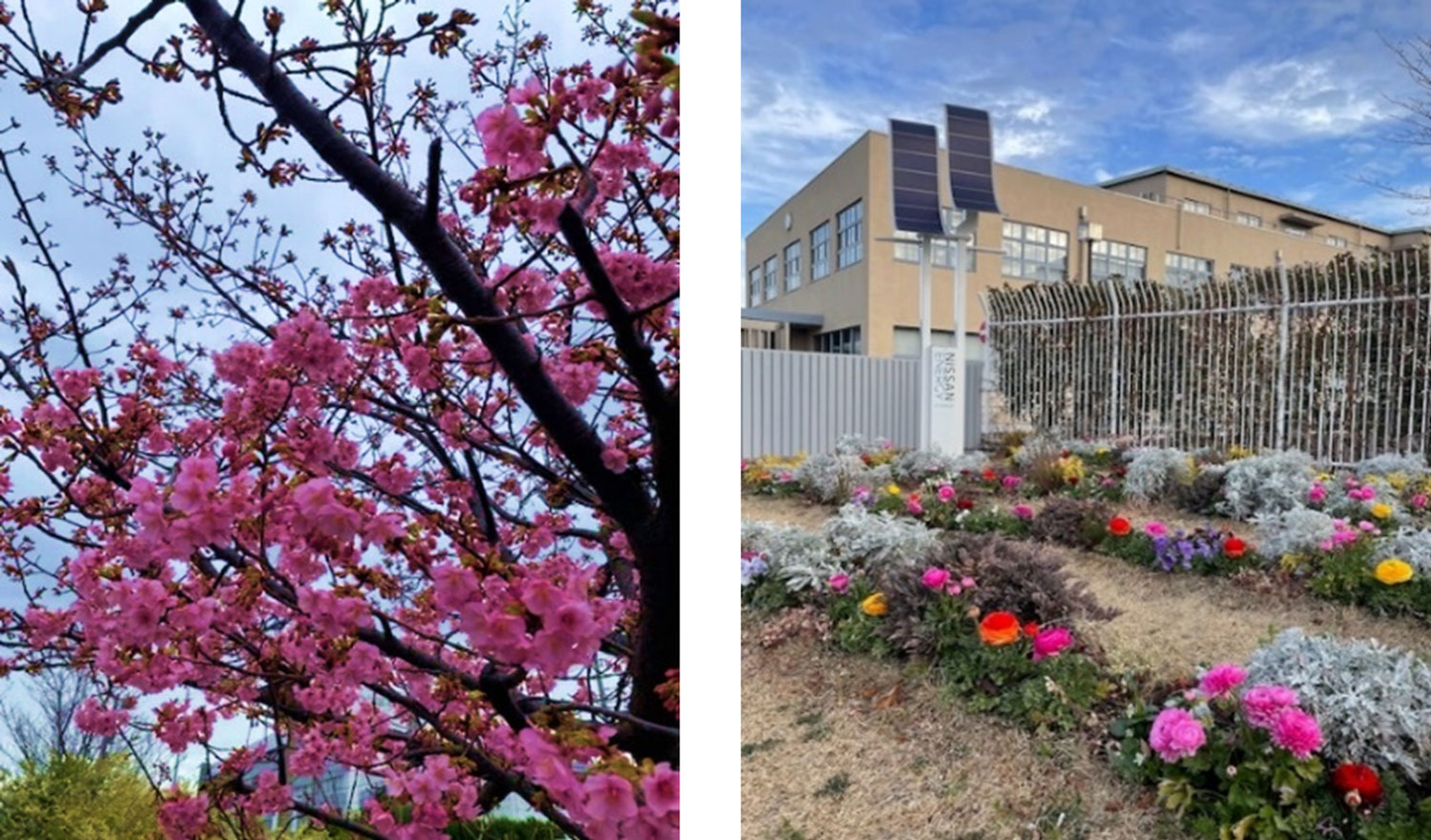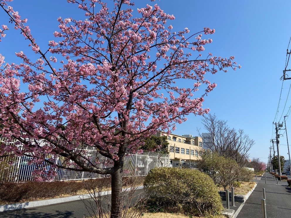 If you notice it, it’s already March... It's almost spring. Flowers that feel spring are beginning to bloom at the Yokohama Plant guest hall. Kawazu cherry blossoms are in bloom alongside on the street near here, and various flowers are in bloom on the plant tour course. Please enjoy them when you visit the Yokohama plant!