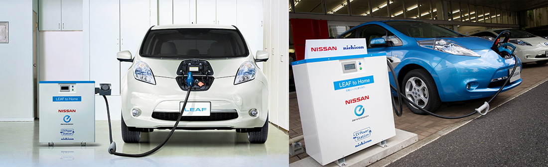 Two years after introducing the LEAF, Nissan became the first company in the world to unveil a system that lets customers share power between their homes and cars. With Vehicle-to-Home (V2H) system, LEAF owners could store energy in their car battery and feed it back to their homes whenever they wanted. They could charge the car's battery when demand and rates were low and use it around the house during peak times.
