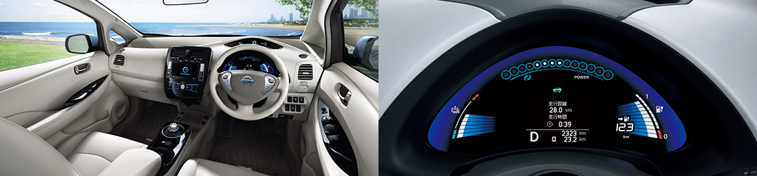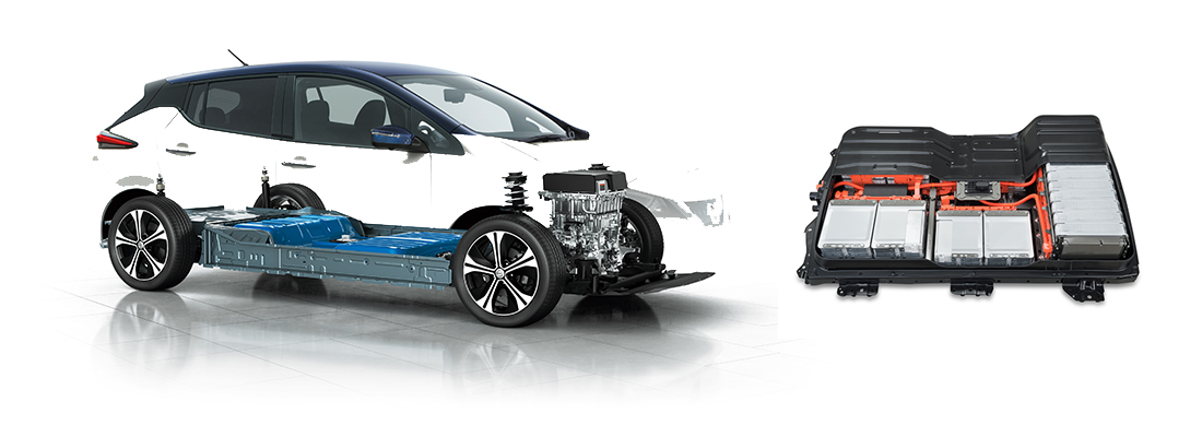 Improvements to the electric powertrain, gave the LEAF more power and extended its range to 228 km. This gave drivers extra peace of mind as they planned how and when to charge their batteries. More range didn't mean bigger components. In fact, the new electric powertrain was smaller. The volume was reduced by 30% and mass by 10%. Reduced power consumption also enabled new perks, like heated seats and steering wheel.