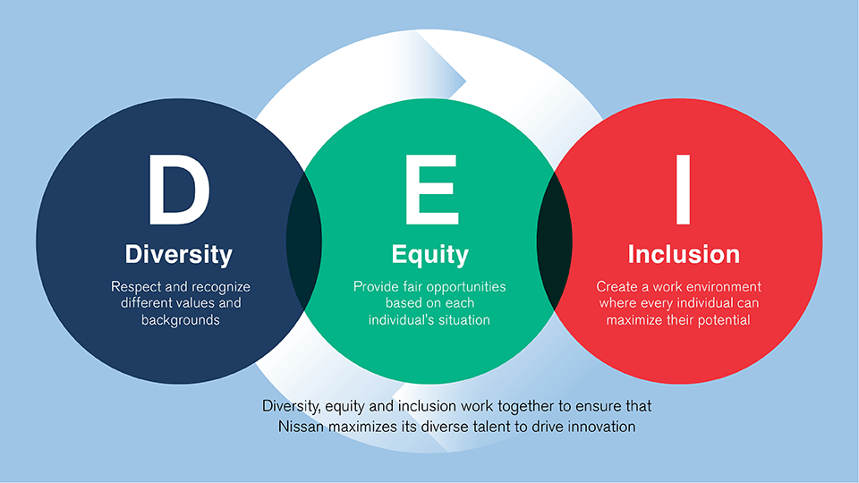 At Nissan, we seek to enrich people’s lives – those of our customers, partners and employees around the world. DEI is a fundamental driver of our corporate culture and is integrated in programs, policies and practices to ensure our people reach their full potential.